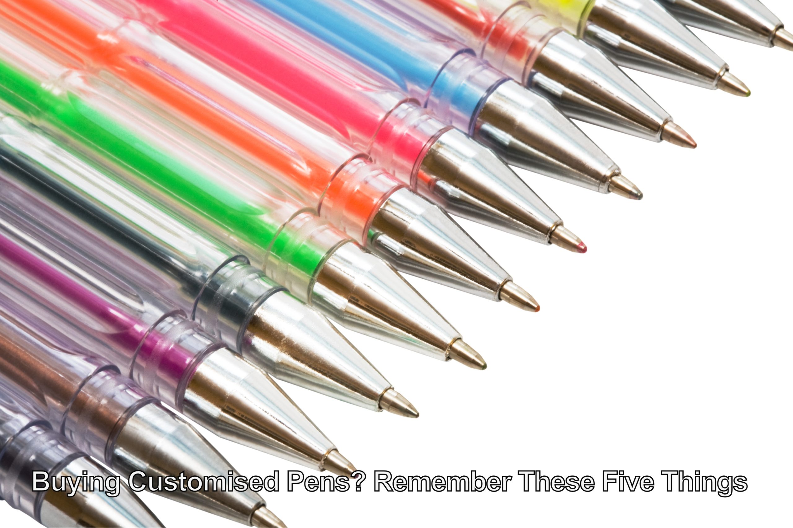 5. Consider purchasing a customised pen that has the base components manufactured in your brand colours. This isn’t as crazy as it sounds, and as long as you don’t need an ‘exact’ colour match, needn’t be cost prohibitive. Creating a pen in this way is clever -it stands out from the crowd and looks like your own corporate pen, even before we print and personalise it.