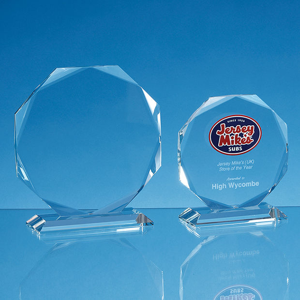 Personalised Awards cover a range of awards that can be used for a number of events. Personalised glass awards can be used for inter company awards, national or international awards, sporting awards or as a gift for an achievement or miles stone – for example a qualification, certification or time serving in the company. In this category you will find awards in a vast range of sizes, shapes and manufactured from different types of glass, there is sure to be something that can work for your event or purpose. Whichever personalised award you choose it will be kept and used for years constantly reminding the recipient of your brand or service offering. So go on, have a browse – and remember – we’re here if you need help.