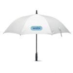 Part of an extensive range of Printed Umbrellas from RT Promotions – these 27 Inch Umbrellas are rather nice. This 27 inch umbrella is manufactured in 190T polyester with fiberglass shaft and ribs with a straight black handle with rubberish finish. This umbrella has a manual closing mechanism and an auto opening mechanism. Our pricing allows for printing onto just ONE panel, but for an additional cost we can print onto all eight if you’d like. They always look great when branded and remember – if your artwork fits – we’ll print it on there for you.