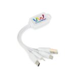 Part of an extensive range of Power Banks and Chargers from RT Promotions – these 3-in-1 Charging Cables are simple yet effective. This 3-in-1 cable charger has multiple leads and adaptors allowing you to connect and charge using USB, type C and reversible 5 pin (iPhone) and micro USB (Android) plugs. This is the kind of ‘must have’ gift for everybody on the move – you can never find the right cable when you need it can you? We brand them for you onto the main hub area, in full colour, under a protective epoxy domed cover. They look great when branded and remember, if your artwork fits – we’ll print it on there for you.