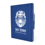 Naturally, we will print and personalise each A4 Mole Mate Duo to your own personal requirements, and our displayed pricing includes the costs of a one colour print onto the front cover of each notebook and a laser engraving onto the barrel of the pen in one position. The pricing DOES NOT include origination/screen and carriage costs – or VAT. Please contact us for an accurate quote to your exact requirements.