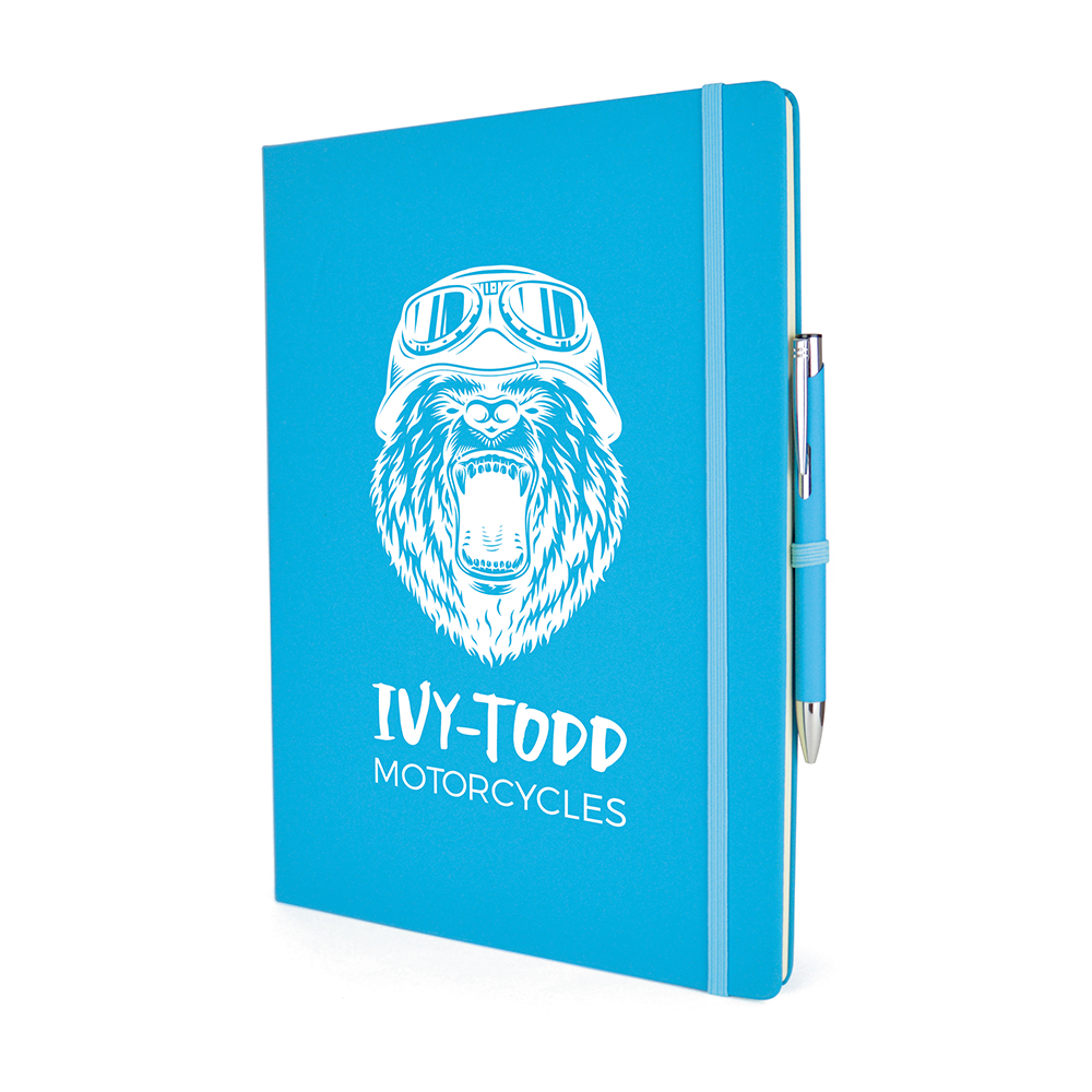 Part of an extensive range of Promotional Notebooks from RT Promotions, this promotional A4 Mole Notepad offers a well-priced option. Manufactured from PU and featuring 80 pages of lined A4 paper, the book features an elastic closure and pen loop, all in matching colours. Available in Red, Black or Blue they look great when branded and remember, if your artwork fits – we’ll put it on there for you.