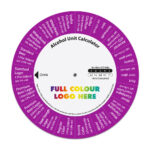 Part of an extensive range of Customised Datadiscs from RT Promotions – these Alcohol Units Calculators are simple but effective and have a multitude of uses. Designed to measure alcohol intake in units it allows the user to be knowledgeable about the potential consequences of their intended alcoholic beverage. Simply rotate the disc onto the drink, and the display window shows the alcohol units. They’d make a brilliant promotional give-away to any company working in the drink and retail sector – perhaps for bars and restaurants, or indeed, anyone working in the health sector. Featuring two discs but with all the necessary scales showing onto the front, we simply print them with your logo and contact information so the recipients know who to contact. With a good sized area for branding onto, we print in full colour, so as long as your artwork fits, we’ll print it on there for you.