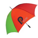 Part of an extensive range of Printed Umbrellas from RT Promotions – the Bedford Golf Umbrella is a popular choice and has plenty of features going for it. Manufactured in the UK and featuring a windproof steel frame, coated with a black finish incorporating black twin fluted ribs. Offering a choice of 12 different coloured pistol grip handles as standard and with over 60 different canopy panel colours to choose from in any combination, there must be one to compliment your brand identity? We can even interchange the colour of the panels, so with the canopy comprising a total of eight panels, maybe you could build the umbrella around your corporate colours? Our pricing allows for printing onto just ONE panel, but for an additional cost we can print onto all eight if you’d like. They always look great when branded and remember – if your artwork fits – we’ll print it on there for you.