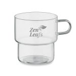 Part of an extensive range of Personalised Drinkware from RT Promotions – the Boro Glass Mug is a little bit different. This mug is made from glass high borosilicate and has a capacity of 300 ml. Please note: This product is dishwasher and microwave friendly. There are multiple options of branding, just ask us and we will tailor it to your needs. This is a perfect giveaway for hotels, restaurants and also corporates looking to gift their employees, with loads of room for branding, your logo/message is sure to stand out. Remember they look great when personalised, if your artwork fits – we’ll print it on there for you.
