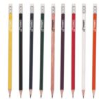 Part of an extensive range of Promotional Pencils from RT Promotions – the Britannia Pencil is a quality pencil that’s an excellent giveaway choice. Manufactured right here in the UK from Weymouth pine, it features a smooth graphite and clay core for easy writing and a synthetic rubber eraser tip for precision corrections. This is a pencil that combines functionality with great brand visibility and is perfect for events, corporate giveaways, offices, or educational institutions. This is a memorable promotional item that reflects your commitment to both sustainability and quality. It looks great when branded and remember, if your artwork fits-we’ll print it on there for you.