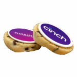 Part of an extensive range of Personalised Biscuits from RT Promotions – these Chocolate Chip Cookies are rather yummy. Biscuits or cookies are a great way to boost and engage with staff or customers – perfect for seminars, training days, or even for low cost giveaways at trade shows. Freshly baked and measuring approx 50mm they are topped with a full colour round/edible/logo image. Available as either; traditional, milk chocolate chip and cranberry, or cocoa – white choc chip and cranberry. Also available with Christmas Designs please contact us for more information and pricing. The ALLERGENS include: wheat/soya/milk. Would your logo or message work here? Individually packed in an ECO film. The shelf life is: 3 months from delivery. They look great when branded and remember, if your artwork fits – we’ll print it on there for you