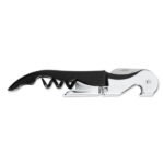 Part of a range of Bottle Openers from RT Promotions – these basic Corkscrews are a classic design that just keeps on going. Manufactured from stainless steel and featuring a knife as well as a double cork stand – they’re available in either Black or Silver. We offer a choice of either printing or laser engraving onto this item. Remember, if your artwork fits – we’ll get it on there for you.
