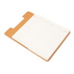 PU notebook with double cork cover, pen slot to spine, 100 lined sheets and 5 coloured sticky flag sets. Notebook size approx. A6 slim.