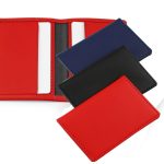 Part of a range of an extensive range of Personalised Wallets and Purses from RT Promotions – this one, the Credit Card Wallet is manufactured from recycled waste plastic bottles which are then combined with a cellulose core, This ECO Friendly process prevents waste bottles from going to landfill, The result is a high quality useful gift with a high-quality build that’s designed to last, This high-quality recycled vegan material has a smooth grain ideal for branding onto, and which looks and feels like leather. The folded and stitched edges give this item a quality finish and features two solid interior pockets with card slots. This is a versatile item that could work equally well, not just for credit cards, but also Season Tickets or ID Cards, Our Personalised Credit Card Wallet is available in a range of colours – maybe, we have a material colour to compliment your brand identity? Wallets are kept and used for years and act as a constant reminder of your logo/branding – they truly are a versatile and robust promotional giveaway. We generally deboss them with your logo or message. This process means they are stamped with a heavy metal die which leaves an impression of your artwork onto the material. Should you wish, we have many more branding solutions, ranging from foil blocking to printing – either onto just one side or both. They look great when branded and remember, if your artwork fits, we’ll brand it on there for you.
