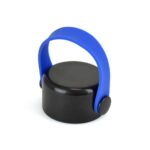 680ml capacity – single walled aluminium drinks bottle with black PP plastic secure screw on lid and matching coloured silicone carry handle.