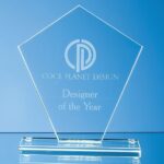 Part of an extensive range of Personalised Glass Awards from RT Promotions . There’s something special about receiving a laser engraved glass or crystal gift or award. Products in this category are built to last, so imagine how many times your branding is going to be seen? These Diamond Awards – Jade Glass have an impressive, modern style. It is 1cm thick and comes in three different sizes. There is a large engraving area that can be personalised with any logo, crest or wording making it an ideal recognition or achievement award – Available in 3 sizes and this is the smallest, please ask us for pricing. Most folk simply want us to engrave their logo onto them, but we can do all kinds of things when personalising them, from adding individual names, and/or award categories, and in multiple positions. Whatever method and style of branding you request, this item always looks great when branded, and remember, if your artwork fits – we’ll engrave it on there for you. NOTE: have you considered having one of our customised, silk-lined presentation boxes? They’re ideal for transporting and displaying glass and crystalware. Both aesthetically pleasing and practical, our presentation boxes can be modified for any product.