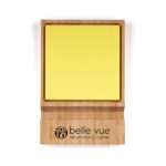 Bamboo phone stand and sticky note holder with 50 square yellow sticky notes.