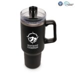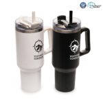 Part of an extensive range of Personalised Travel Mugs from RT Promotions – standing tall and proud you can see why we named this mug the Everest Travel Mug. Featuring a unique but very popular design, this Travel Mug has a WHOPPING 1182ml capacity. Manufactured from stainless steel and double-walled to ensure your drinks stay at your desired temperature for longer, the mug features a built-in recycled PP handle. A mug like this is going to be kept and used for years, acting as a constant advertising billboard for your brand. BPA and PVC free. They look great when branded and remember, if your artwork fits – we’ll print it on there for you.