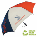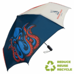 Part of an extensive range of Printed and Sustainable Umbrellas from RT Promotions – the Executive Telescopic UK ECO is a superb umbrella but with a totally customisable canopy made of recycled plastics. ECO recycled fabric that can be fully dye sublimated as standard with edge to edge printing available – automatic function for quicker opening and closing – rubber coated handle with carry strap and option for printed decal. Our pricing allows for printing onto just ONE panel, but for an additional cost we can print onto more if you’d like. They always look great when branded and remember – if your artwork fits – we’ll print it on there for you.