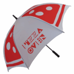 Part of an extensive range of Printed Umbrellas from RT Promotions – the Fibrestorm Auto is a consistently reliable fibreglass golf size umbrella. One of FOUR variations of this umbrella. This is our auto-opening option. Featuring stormproof fibreglass stem and ribs for increased flexibility and stability in stormy conditions. With an ergonomic black pistol grip handle as standard featuring a decal option and integrated push button this popular umbrella packs a punch. When it comes to the canopy we have an amazing choice of over 50 different fabric colours. With so much choice, there must be a colour combination to compliment your brand identity? We can even interchange the colour of the panels, so with the canopy comprising a total of eight panels, maybe you could build the umbrella around your corporate colours? Our pricing allows for printing onto just ONE panel, but for an additional cost we can print onto all eight if you’d like. They always look great when branded and remember – if your artwork fits – we’ll print it on there for you.
