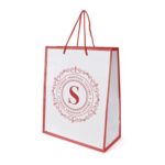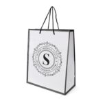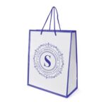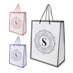 Part of an extenesive range of Shopper Bags from RT Promotions, the Glossy Shopper is an incredibly stylish promotional gift – manufactured from White laminate paper, this bag features a striking coloured trim with matching thing rope handles. Available in either Blue, Black, or Red – is there a colour to compliment your brand identity? What makes these a popular choice is how quickly we can get them to you – just 5 days from artwork approval – these are perfect for when you need a quality promotional gift in a pinch. With their large print area and options for printing in multiple colours on either one or both sides, they look great when branded and remember, if your artwork fits – we’ll put it on there for you.