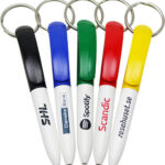 Twist-action ballpen with split key ring – white pen body, coloured tops.