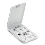 Part of an extensive range of Desktop Gadgets from RT Promotions – this Handy Phone Cable Kit ticks a lot of boxes. This multi-functional cable and connector kit includes data transfer and power transmission cables: Type-C to Type-C cable, Type-C to Type-A adapter and also Type-C to Micro USB adapter. When you receive a new phone the first thing you loose is your SIM ejector pin but this handy phone cable has one kept safe, so even if you loose the one which came with your phone. You will always have one in your Handy Phone Cable Kit. They look great when branded and remember, if your artwork fits – we’ll print it on there for you.