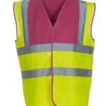 Part of an extensive range of Personalised Work and Industrial Clothing from RT Promotions, this one, the Hi Vis Waistcoat is a little different. Want some colour in your workwear? There’s loads of colourful combinations with this item, maybe even one to compliment your brand identity? This Two Band & Braces Waistcoat is 100% polyester, with a tear release front fastening. Featuring two 5cm reflective tape bands around the body and one over each shoulder, and with contrast bound edges. Just look at the choice of colours: Hi-Vis yellow, orange, orange/yellow conform to EN ISO20471:2013 class 2. Black, lime, navy, purple, paramedic green, red, raspberry, royal blue yoke on Hi-Vis yellow conform to EN ISO20471:2013 class 1. All other colours provide enhanced visibility in all kinds of environments. Comes in sizes S- 3XL.