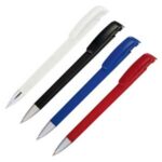 Part of an extensive range of Personalised Pens from RT Promotions the Koda Deluxe Ball Pen is manufactured in a classic design – so much so, we have multiple variations for this one pen, and we wouldn’t do that unless it was a popular choice. You’ll get a quality feel from this well finished push action ball pen which features a real metal nose cone – giving you weight and a substantial feel. Available in some nice colours – perhaps there’s a colour that compliments your brand identity? Offering multiple branding positions, from the clip to the barrel, and in multiple print colours, the pen offers loads of possibilities. They look great when branded and remember, if your artwork fits we’ll print it on there for you. Black Ink.