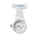 These Medical Watches are a pretty fancy. Manufactured from ABS Plastic this analogue watch is perfect for use in the medical sector and a great way to get your brand seen on a constant basis. Available White only, we print print along the top clip of the watch only and remember – if your artwork fits, we’ll print it on there for you. Batteries included.