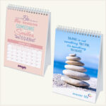 Part of an extensive range of Personalised Calendars from RT Promotions – the Mindfulness Easel Pod is a little bit different. Designed to sit on your desktop it has 7 x sheets of white 300gsm card and a hard back easel, the whole pod is wiro-bound making it easy to turn the months over. Half way through the year, you turn them over, reverse it, and start again. All clever stuff eh?. Featuring an inspitational or thoughtful message for the month, each sheet is printed in full colour and the whole calendar is then individually packed in white peel and seal envelopes. Promotional Calendars have long been an ‘evergreen’ in the promotional merchandise sector and it’s easy to see why – if you get this right, your product will be on display for a whole year, acting as a constant reminder of your logo/brand and service offering. They look great when branded and remember, if your artwork fits – we’ll print it on there for you.