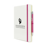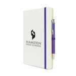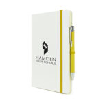 “Part of an extensive range of Promotional Notebooks from RT Promotions – to make things easy for you we’ve put together a notebook and pen ‘package’. The Mole Mate Duo A5 White combines the best of both worlds – our most popular A5 notebook and best-selling metal ballpen – all in one package, and with BOTH items being branded and personalised. The notebook is manufactured with a soft PU cover – the stand out feature is that the cover is White. Featuring a contrasting colour for the elasticated band, ribbon bookmark and pen loop the package is distinctive and stylish. Comprising 80 sheets of lined paper and a heavy duty card back pocket in the rear, really useful for storing receipts or business cards. The pen, which writes in black ink, features a tactile satin-matt finish and is available in a huge range of colours. BOTH the pen and the notebook will be branded, and remember, if your artwork fits – we’ll get it on there for you.