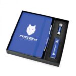 Four items: Moleskin Notebook, Ballpen, Torch Keyring and Power Bank – colour co-ordinated and all branded