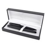 Part of an extensive range of Personalised Pen and Pencil Sets from RT Promotions the Montreal Set is distinctive, modern looking and oozes style. Comprising two pens from our Kari range – the Kari Ballpen and the Kari Rollerball Pen – they’re both metal and feature a textured clip and a carbon fibre barrel – don’t they look stunning when seen side by side? The Ball pen is a twist action and the Roller ball has a cap. Both pens write with black ink. Supplied in a Hi-line gift box that has got a lovely soft feel interior in leatherette style, we are sure this will tick lots of your boxes! Both have a weighty feel when picked up and would make an ideal corporate gift, or, perhaps to be used internally as a presentation for achievement. Gift box included (this can be branded too – additional cost). We can either print or engrave onto these pens, and remember, if your artwork fits – we’ll get it on there for you.