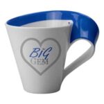 Part of a range of Printed Coffee Mugs from RT Promotions all branded and personalised specifically for you. The New Wave Mug is a mug of distinction and class and will certainly ensure your brand is noticed. Manufactured from porcelain by the world renowned brand Villeroy & Boch, the mug offers boundless opportunities for creative branding. Show us your artwork, and we’ll show you what we could do with it on this mug – from front and rear prints, inside transfer prints, printing onto the bottom, and we can even brand the amazing swirling handle. Most coffee mugs have a minimum print run of x 72, but in this instance, we can offer you fully branded coffee mugs from as few as 12. Remember, if your artwork fits – we’ll print it on there for you. Capacity: 340ml.
