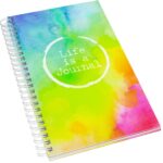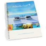 Part of an extensive range of Printed and Personalised Wiro Notebooks from RT Promotions – the Notebook Journal is an amalgamation of a handy diary/journal and a notebook. Comprising 52 x sheets of 80gsm paper which, when opened reveals a week to view diary on the left hand side, and a place for your notes on the right hand side. Wiro bound means the notebook lies flat when opened. Featuring matt laminated covers to the front and rear, and with a choice of colour for the wiro binding on the left hand side (gold, black or white), you can see that this product is a ‘keeper’. Available in three sizes – this is our most popular size 130mm x 210mm. We have loads of options for personalising and branding onto this product, but our displayed pricing allows for a full colour print onto the front cover, and for all of the internal sheets to be printed in one colour – journal on the left, and lined paper on the right. Perfect to use as a promotional giveaway and a great way to get your branding and messages onto the desks of your clients. Available with recycled paper, please ask for details. They look great when printed and branded – remember – if your artwork fits – we’ll print it on there for you.