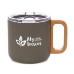 Part of an extensive range of Personalised Travel Mugs from RT Promotions, stay stylish with the Renoir Travel Mug our 400ml travel mug, made from recyclable stainless steel and featuring a comfortable beech wood handle. The push-down AS plastic lid with a sliding sipper ensures spill-free sipping, making it perfect for enjoying your favourite beverages on the go! They look great when branded and remember, if your artwork fits – we’ll print it on there for you.