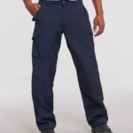 Part of an extensive range of Personalised Work and Industrial Clothing from RT Promotions, this one, the Russell Heavy Duty Workwear Trousers are made from 65% polyester/35% cotton canvas. Featuring stain resistant DuPont Teflon coating, belt loops, a YKK zip, internal knee pad pockets, reinforced seat, phone pouch, triple stitched pocket openings and inseams, cargo pockets on legs two rear pockets one open and one with tear release closure. Suitable for 60 degrees Celsius domestic wash. Weight: 260 gsm.