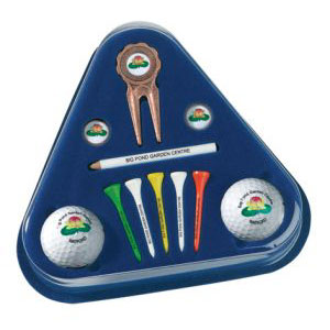 This Selection Box Set has got lots to offer, and is sure to be a popular promotional gift for any golfer. Packed inside a clear PVC container you’ll find: Two Wilson Ultra golf balls, eight wooden tees and one antique finish ball marker. ALL of these items will be printed with your artwork. The ball marker is available in three different finishes: bronze, nickel or brass. Perfect for your corporate golf day.