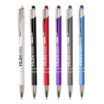 Part of an extensive range of Quality Metal Pens from RT Promotions – the Sleek Stylus Ball Pen is a sophisticated promotional tool that’s perfect for making a lasting impression. This pen is crafted from recycled aluminium, giving a new purpose to waste materials while not compromising on style. With a smooth stylus tip, it’s perfect for navigating touch screens with ease. Available in a variety of captivating metallic colours, maybe we have one to perfectly complement your brand identity? It looks great when branded and remember, if your artwork fits-we’ll engrave it on there for you.