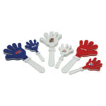 Part of an extensive range of Personalised Merchandise available from RT Promotions these Small Hand Clappers are sure to bring you a lot of attention at your next event. Available in some nice colours, all with a White handle and middle hand – perhaps there’s a colour to compliment your brand identity? They make a crazy clappy NOISE!!!! Perfect for noisy events or functions. We can print up to a maximum of 3 x colours onto this item. They look great when branded and remember, if your artwork fits – we’ll print it on there for you.