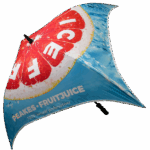 Part of an extensive range of Printed Umbrellas from RT Promotions – the Spectrum QuadBrella is sure to make you and your guests ‘stand out from the crowd’. Featuring a seamless, one-piece square canopy this distinctive umbrella is built around our robust ‘Spectrum’ umbrella frame. Featuring six interchangeable stem, spike, handle & tip cup colour options available at no extra cost – this allows you to pick and mix the componants, around your brand colours, and we’ve not even printed onto the canopy yet!! With stormproof steel ribs for increased flexability in stormy conditions and an ergonomic black rubber coated pistol grip handle as standard, there’s lots to like. Manually operated opening. Our pricing allows for printing onto just ONE panel, but for an additional cost we can print onto all eight if you’d like. They always look great when branded and remember – if your artwork fits – we’ll print it on there for you.