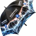 Part of an extensive range of Printed Umbrellas from RT Promotions – the Spectrum Sport Umbrella has just about everything going for it. Manufactured in the UK and featuring a choice of 10 interchangeable colours for either the handle, tip, cup, stem and spike, and an amazing choice of over 50 different fabric colours for the canopy – perhaps there’s one to compliment your brand identity? We can even interchange the colour of the panels, so with the canopy comprising a total of eight panels, maybe you could build the umbrella around your corporate colours? The umbrella features an oversized push button (manual) opening mechanism and has stormproof steel ribs for increased flexability in stormy conditions. The ergonomic black rubber coated pistol grip handle is fitted as standard (other options are available). Our pricing allows for printing onto just ONE panel, but for an additional cost we can print onto all eight if you’d like. They always look great when branded and remember – if your artwork fits – we’ll print it on there for you.