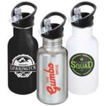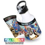 Part of an extensive range of quality Personalised Metal Water Bottles from RT Promotions – the Steel Travel Drinks Bottle has a smart, unique design. Water bottles make fabulous promotional gifts as they are kept and used for years, constantly reminding the recipient of your logo or service offering. Manufactured from stainless steel, they have a practical, sealable leakproof sip lid, and a capacity of 500ml. The top of the water bottle comes in plastic or bamboo (subject to additional cost), and you have a choice Black, White or Classic Steel for the main body. They look great when branded and remember, if your artwork fits – we’ll print it on there for you. We can offer full colour print on the white only.