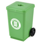 CLEARANCE LINE – Pricing reduced – Limited colour choice – Plastic wheelie bin shaped pencil sharpener.